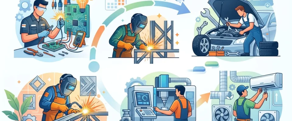 Освоить рабочую профессию за 3 месяца — это реальная цель, если выбрать направление с понятным набором навыков и достаточной практикой. Электромонтажник и плиточник подойдут тем, кто хочет быстро выйти на частные заказы и постепенно повышать чек. Монтажник кондиционеров — отличный вариант для тех, кто готов к сезонности и любит «технические» задачи. Сварщик дает высокий потенциал дохода, но требует дисциплины и регулярной практики. Оператор ЧПУ — хороший путь в стабильное производство, где ценятся точность и ответственность.